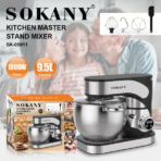 كمان عجانة سوكاني ديچيتال SK-05011 بتيجي معاها 3 ملحقات أساسية (خطاف العجن – مضرب البيض – مضرب الخلط) علشان تقدري تعملي كل حاجة من أول الكيك والبيتزا لحد المعجنات والمخبوزات. فيها غطاء شفاف ضد التناثر علشان المطبخ يفضل دايمًا نظيف أثناء التشغيل.