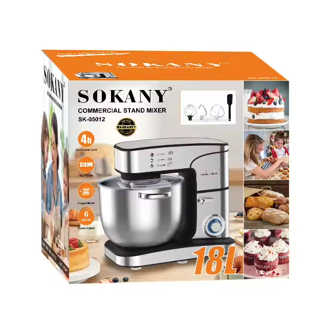 عجانة سوكاني SK-624 السعة الكبيرة 13 لتر بتخليها مثالية جدًا للعيلة الكبيرة أو لو بتحبي تحضري كميات كبيرة مرة واحدة. الوعاء مصنوع من ستانلس ستيل متين ضد الصدأ، وسهل التنضيف جدًا، وغطاء شفاف بيخليكي تتابعي كل خطوة وانتِ مطمنة إن العجين طالع مظبوط.