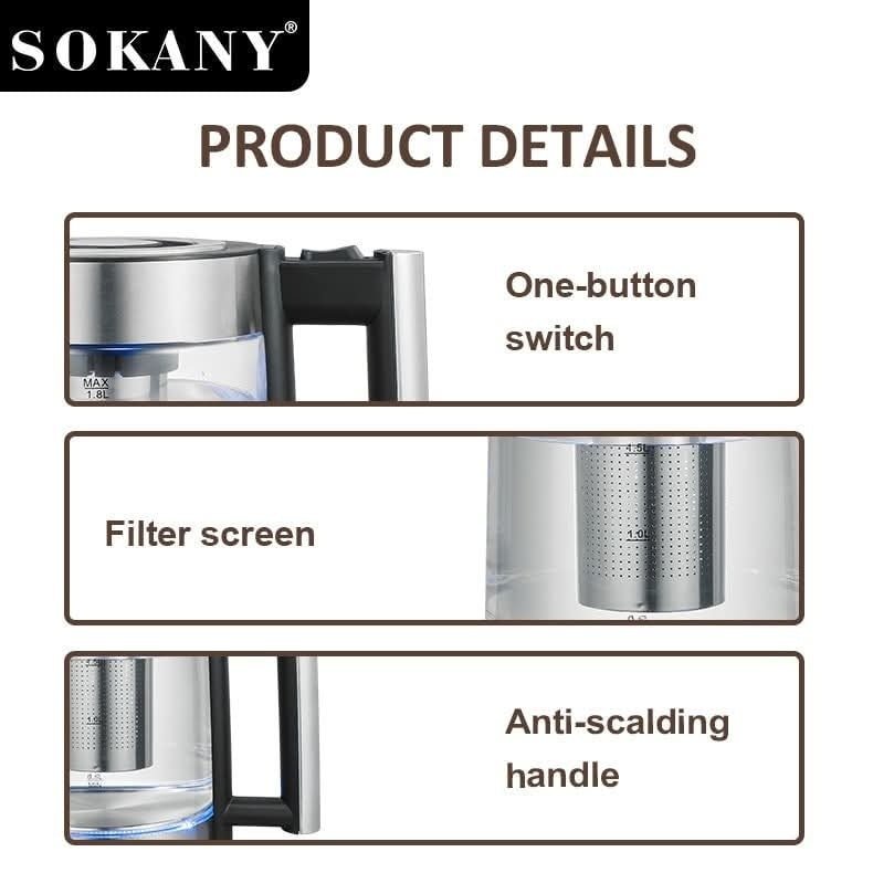 لو بتدوري على غلاية تجمع بين الأمان، السرعة، والأناقة يبقى غلاية سوكاني SK-09062 زجاج 1.8 لتر 1800 وات هي الاختيار الأمثل ليكي ولأسرتك.