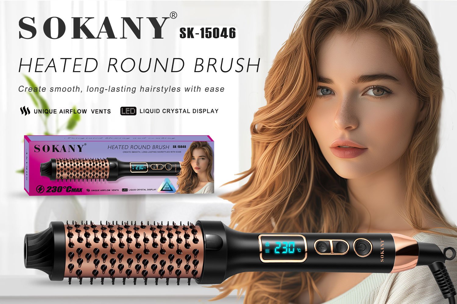 فرشة استشوار سوكاني حرارية ديجيتال حتى 230 درجة موديل SK-15046 هتكون الأداة المثالية لتصفيف شعرك بسهولة واحترافية. الفرشة مصممة بخاصية التحكم الرقمي في درجة الحرارة وبتوصل لحد 230°، عشان تديكي أفضل نتيجة سواء لشعرك الخفيف، الكثيف أو المموج.