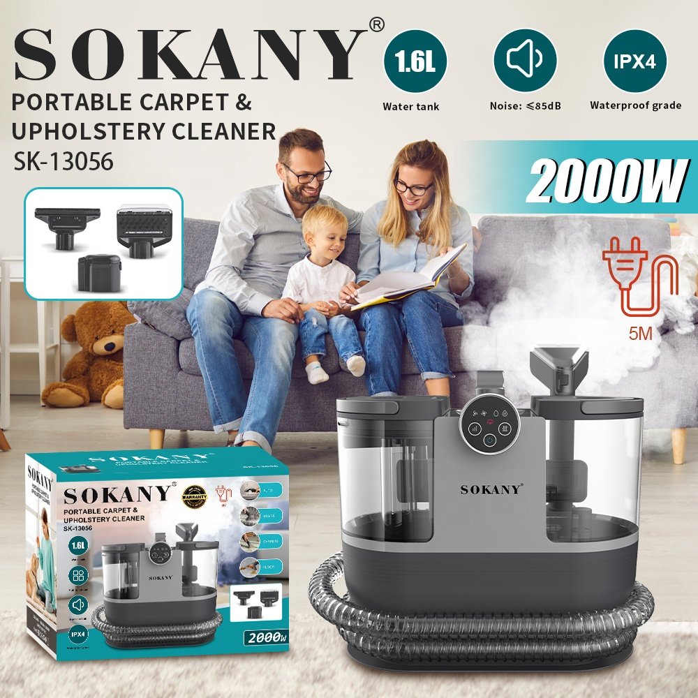 مكنسة تنظيف سوكاني SK-13056 هي الجهاز المثالي لو بتدوري على حل عملي وسريع للتخلص من البقع والاتساخات اللي بتصعب عليكي في السجاد أو الأنتريه. المكنسة بتشتغل بقوة 2000 وات، وده بيديكي شفط قوي مع بخار فعال يقدر يشيل البقع العنيدة ويعقم الأسطح في نفس الوقت.